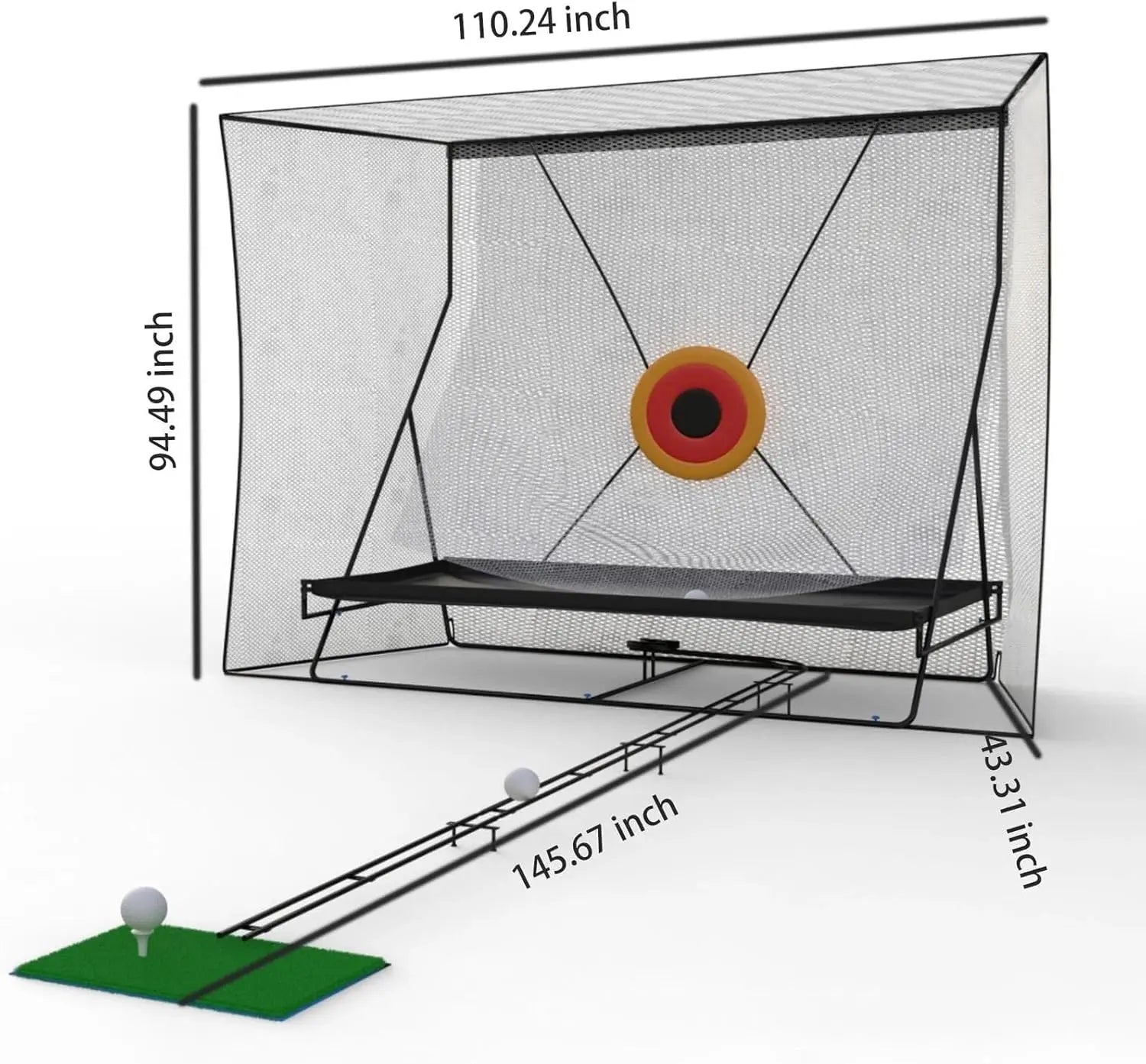 - Spacious 12x9 ft hitting area with a clearly marked Bullseye zone helps you align and sharpen target accuracy on each swing.